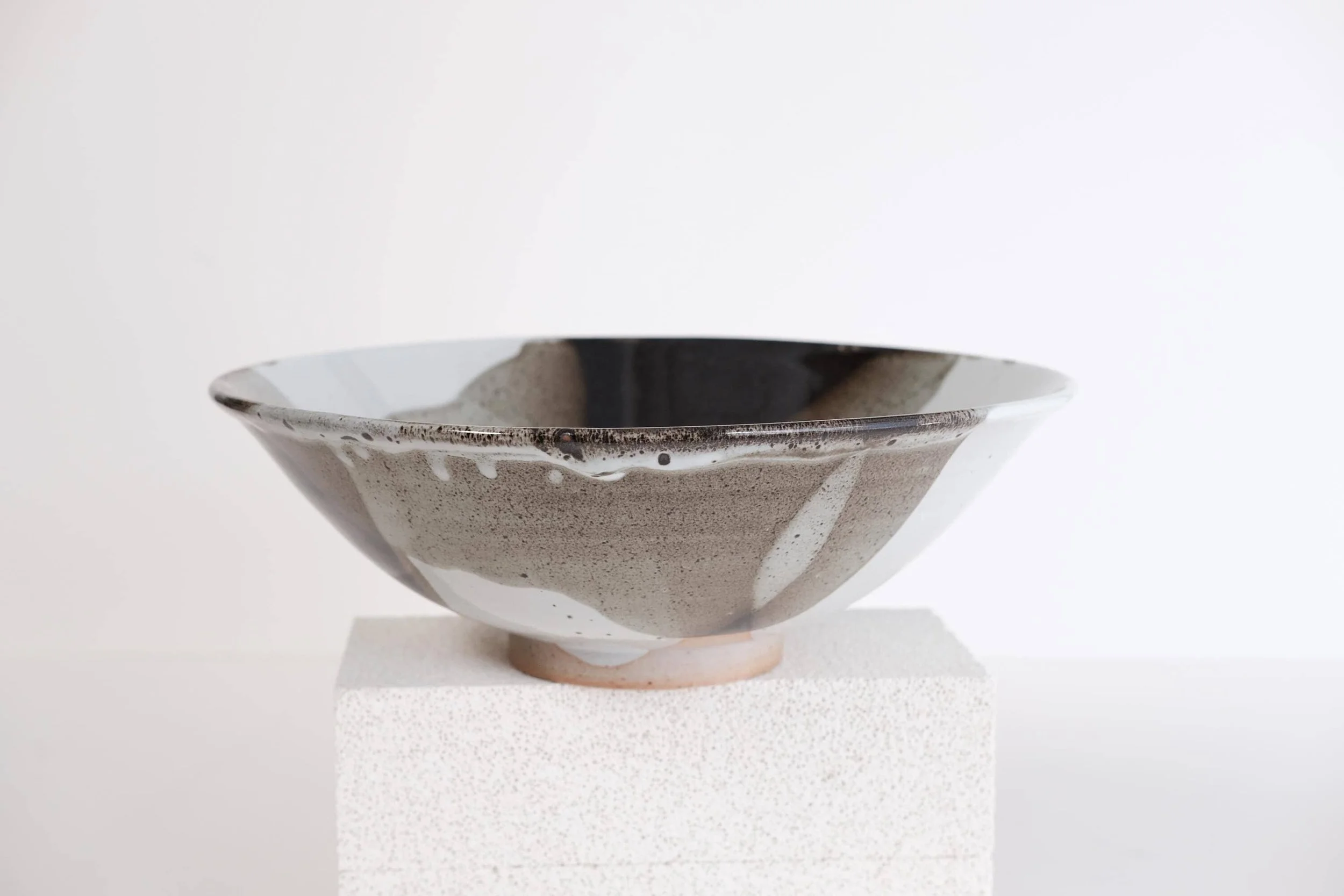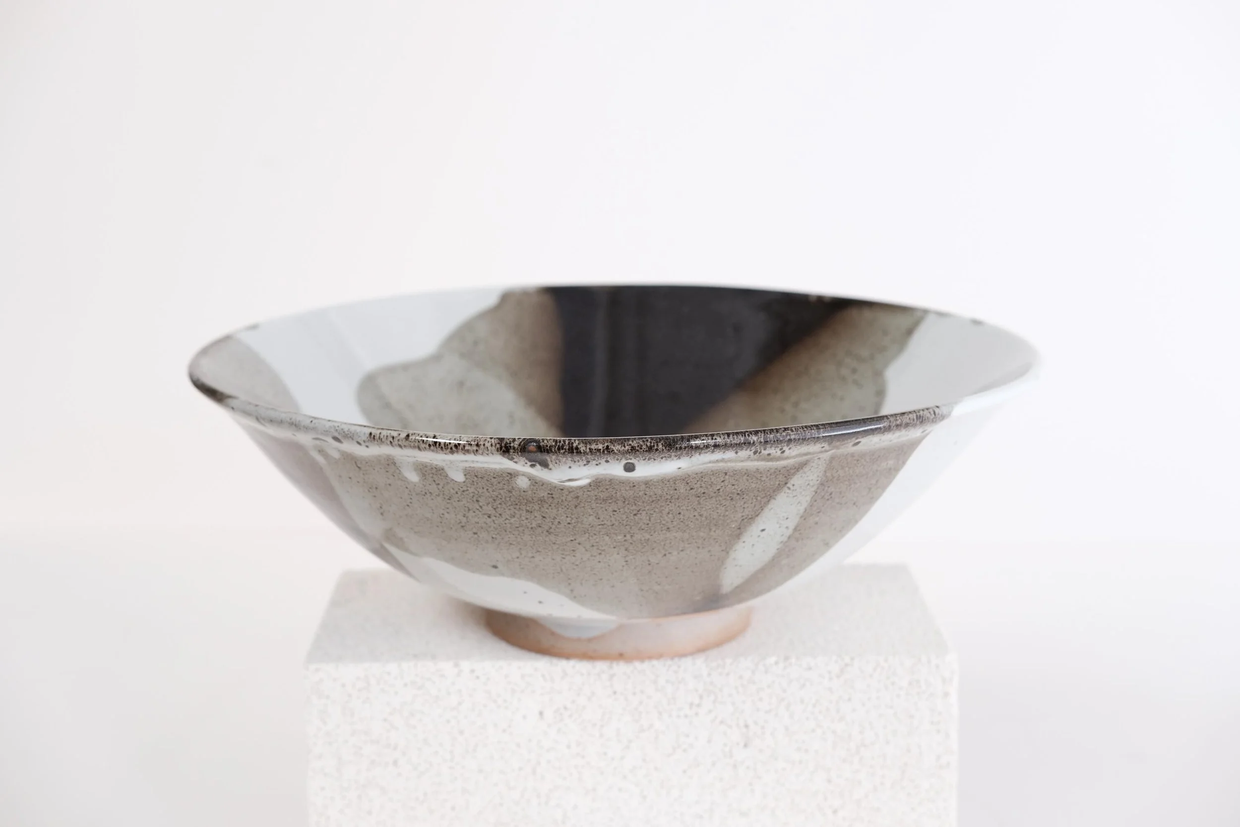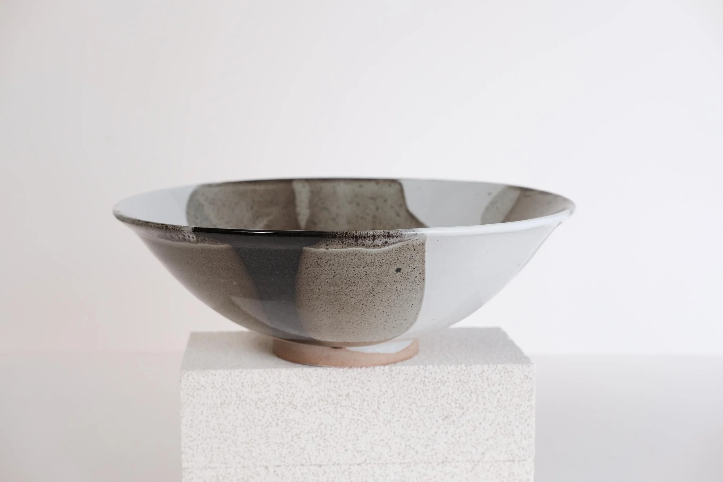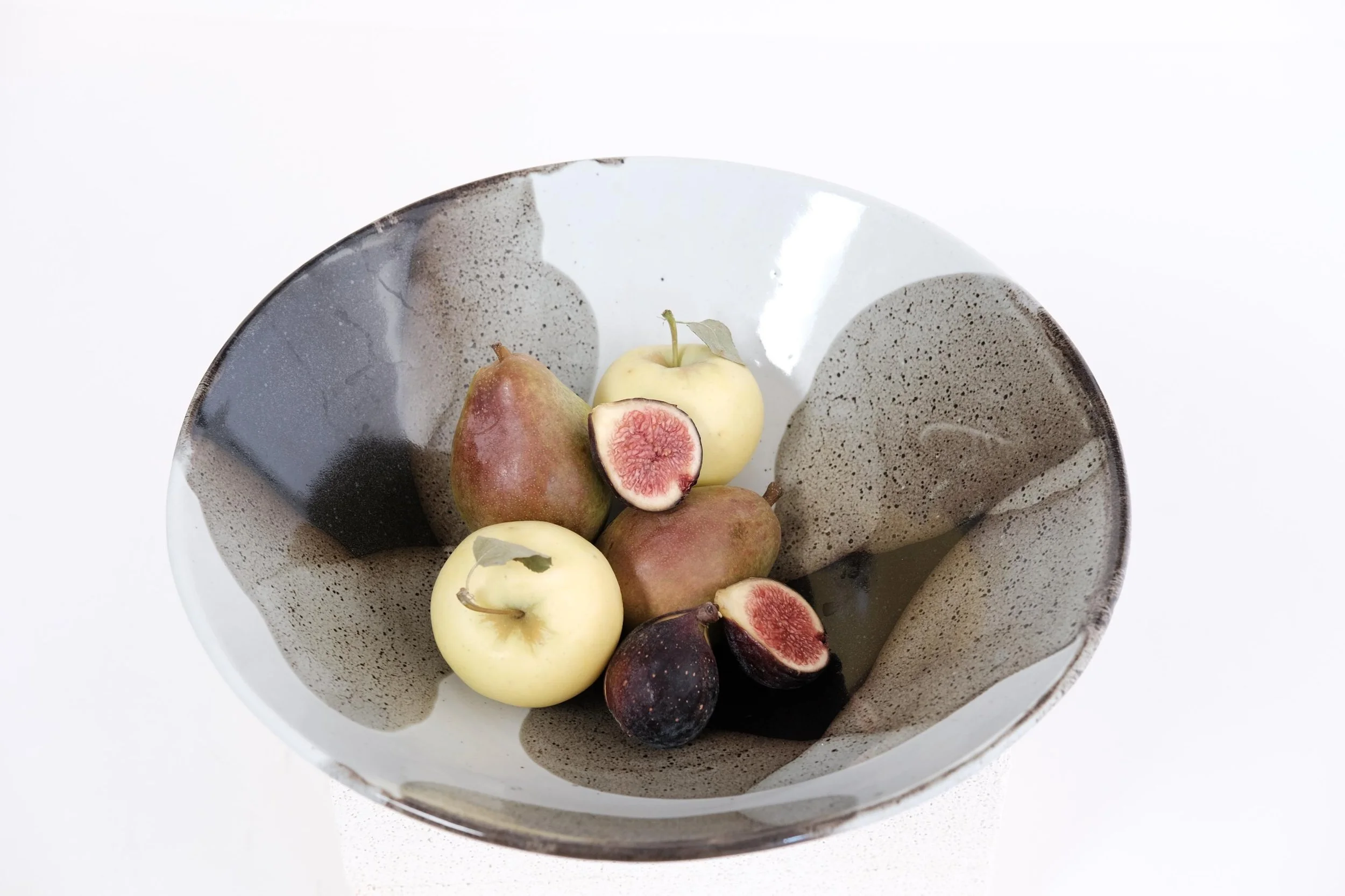 Handmade stoneware large serving bowl Stunning one of a kind statement piece to decorate a dinning table, a credenza, present fresh fruits or serve salad to your hosts. — W 12’’ - H 4’’ — Handmade ceramics have beautiful imperfections that makes them unique. — The glaze is food safe, durable, dishwasher and microwave safe.