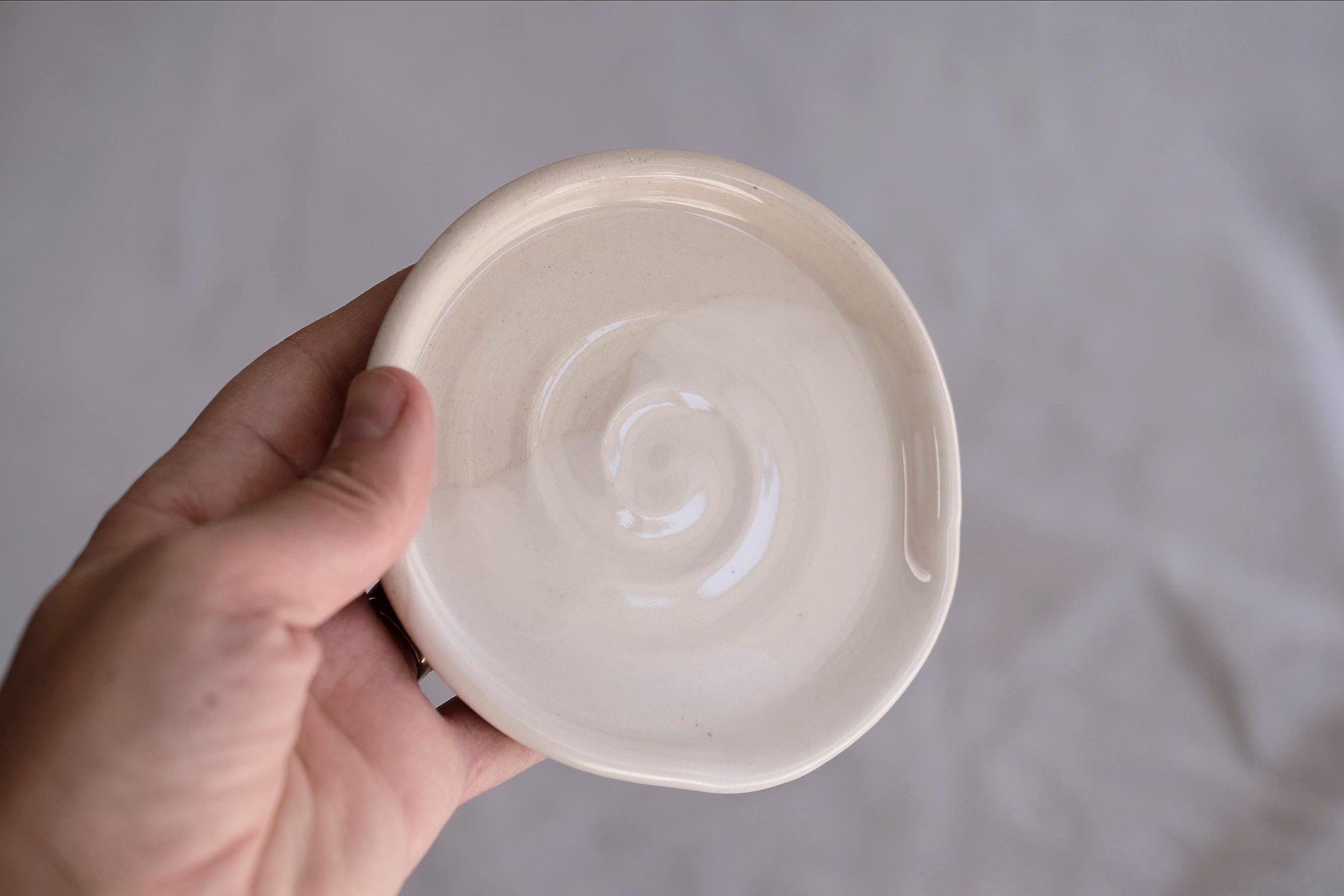 beautiful porcelain spoon rest. Wheel thrown and hand glazed.
